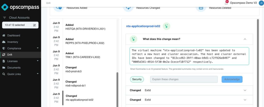 One of the powerful features of Opscompass is drift detection. Anytime any resource changes, Opscompass tracks those changes and shows them through drift.